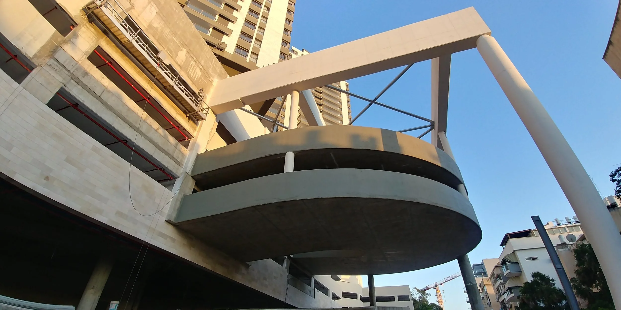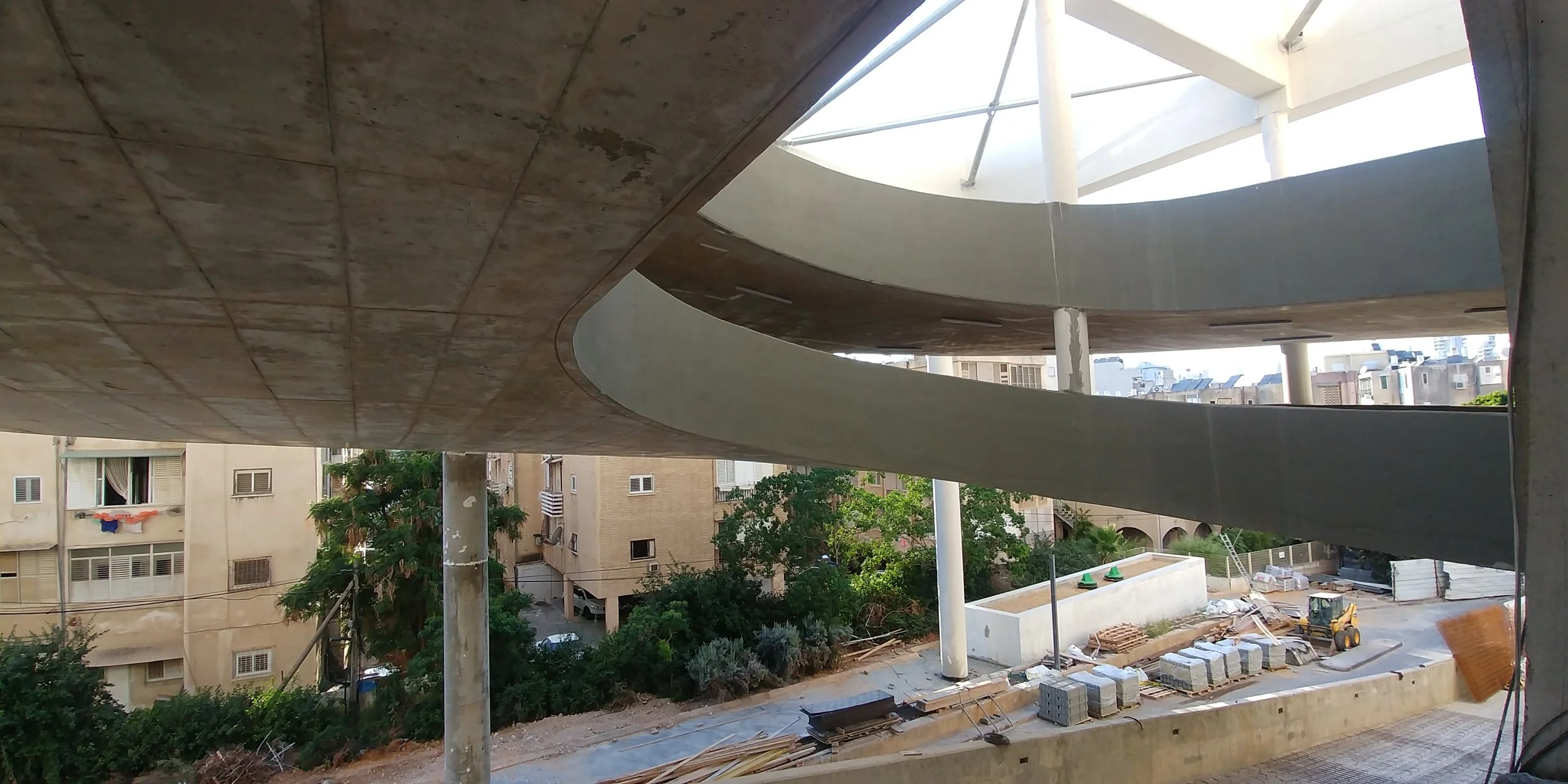 The formwork of the feature car-park ramp has been removed, completing the structural works on this high-rise residential project in Petach Tikva.